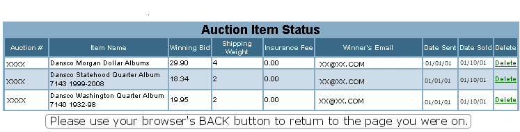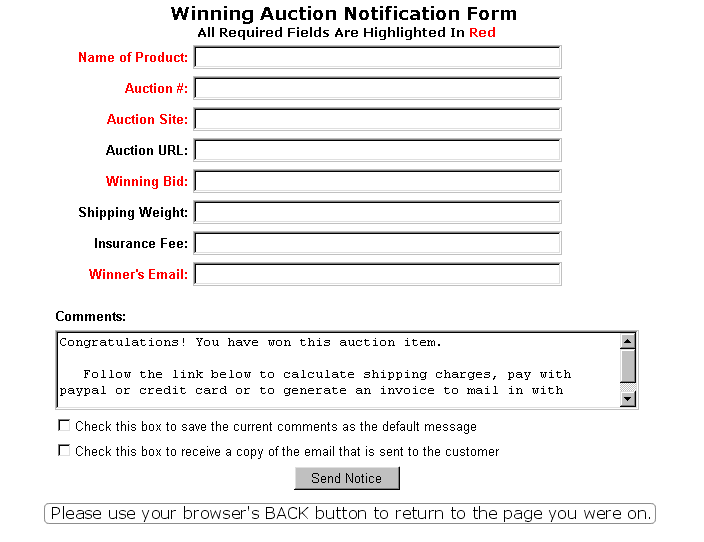The Auction Module is available for online stores that also sell products on Ebay or other online auction sites. This module provides the store administrator with the ability to send auction winners notification of their winning bid and also to direct the auction payment through the online store. When the auction customer pays through SmartCart, they have the ability to add more products to their order. Conveniently, all auction orders that are processed through SmartCart can be accessed at any time through the Secure Order Management Area in the Admin Controls.